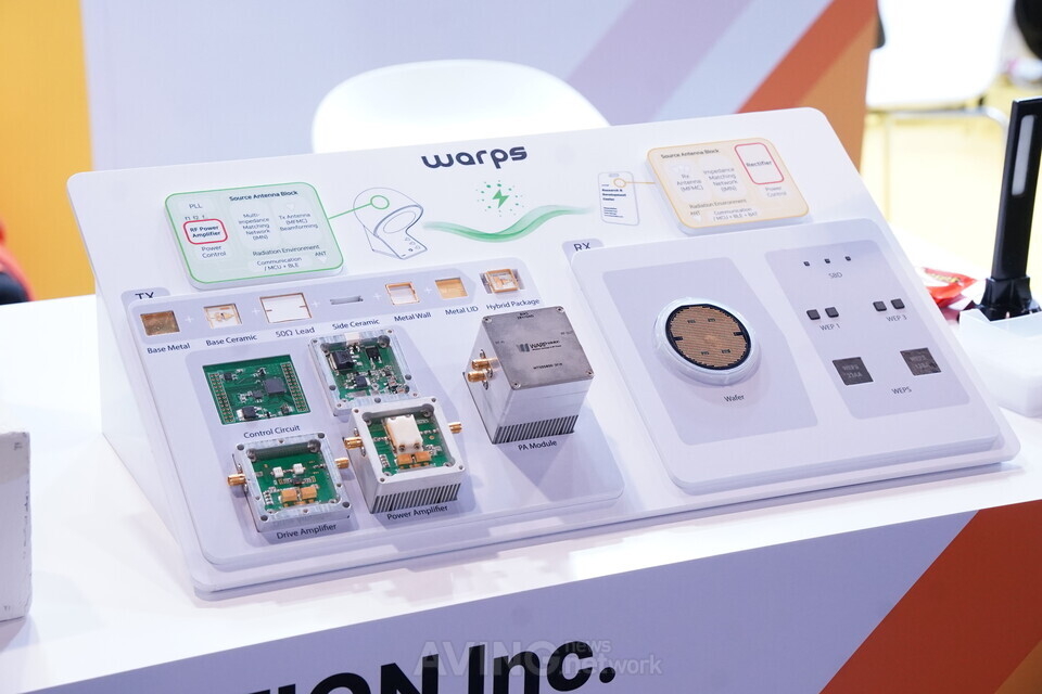 워프솔루션은 배터리 교체가 잦거나 유선 전력 인프라 구축이 어려운 스마트 물류 설비, 공장 자동화 장비, 헬스케어 기기 등에서 지속적이 전력 공급 수단으로 사용할 수 있도록 범용성을 확보했으며, WARPS를 공간 단위로 전력을 공급하는 차세대 전력 인프라로 소개하며 현장 참관객들로부터 이목을 끌었다.